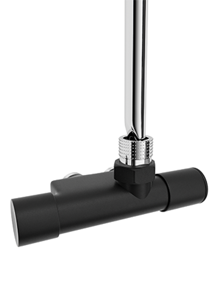 NH-ventilen är snyggt designad för att smälta samman med handdukstorken till en helhet. Välj mellan manuell ventil med handratt för steglös värmereglering eller termostatventil som känner av rummets temperatur.