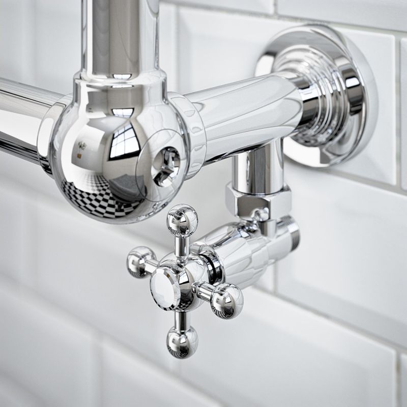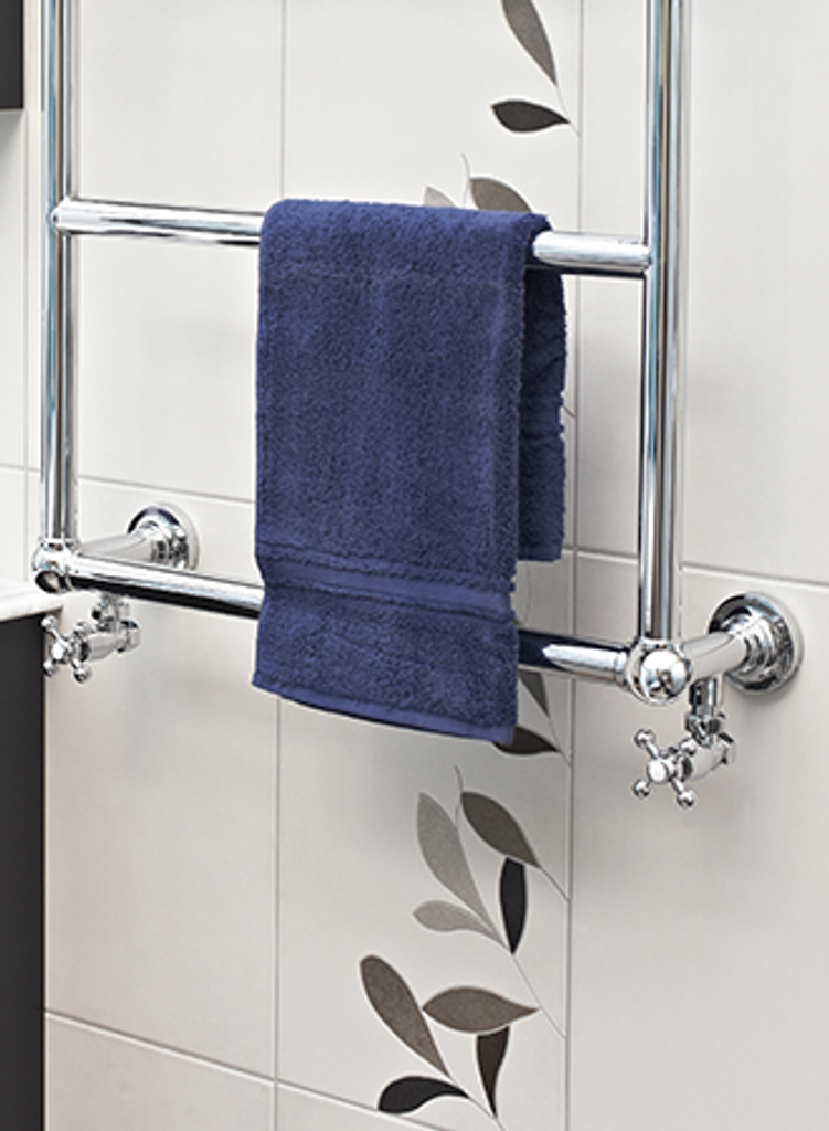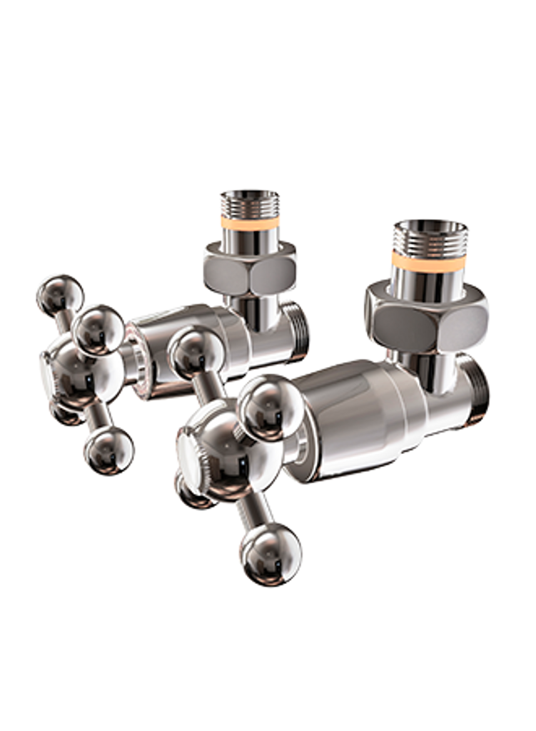 Ett ventilset består av ett inflöde och ett utflöde och de ansluts i var sin sida av de vertikala rören på handdukstorken.