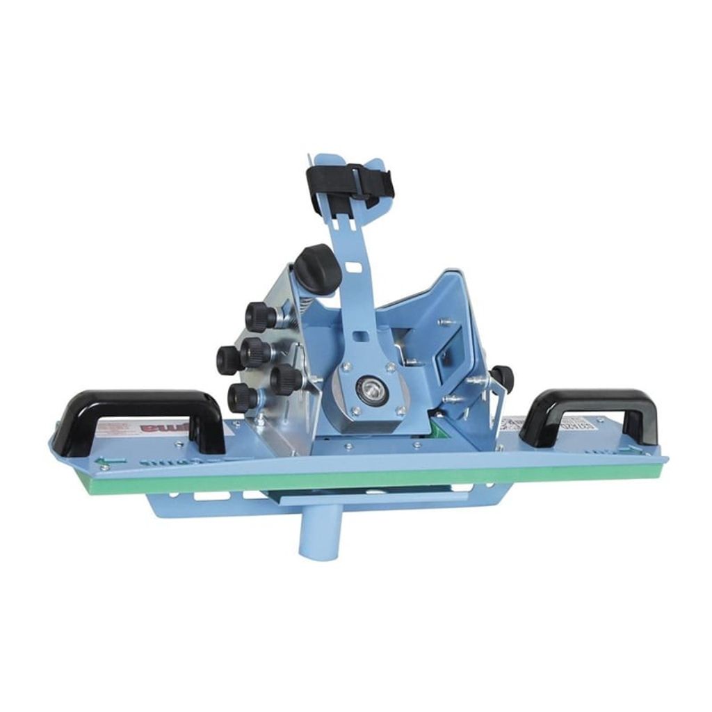 Ställ för vinkelslip med M14 gänga. Används vid torrbearbetning av kanter med vinkelslip och diamantprofil eller diamantklinga. Passar all typ av byggkeramik. Anhåll för jämn fräsning. Dammsugaranslutning Ø 35 mm. Levereras med diamantklinga för kapning av material med tjocklek 5-20 mm.